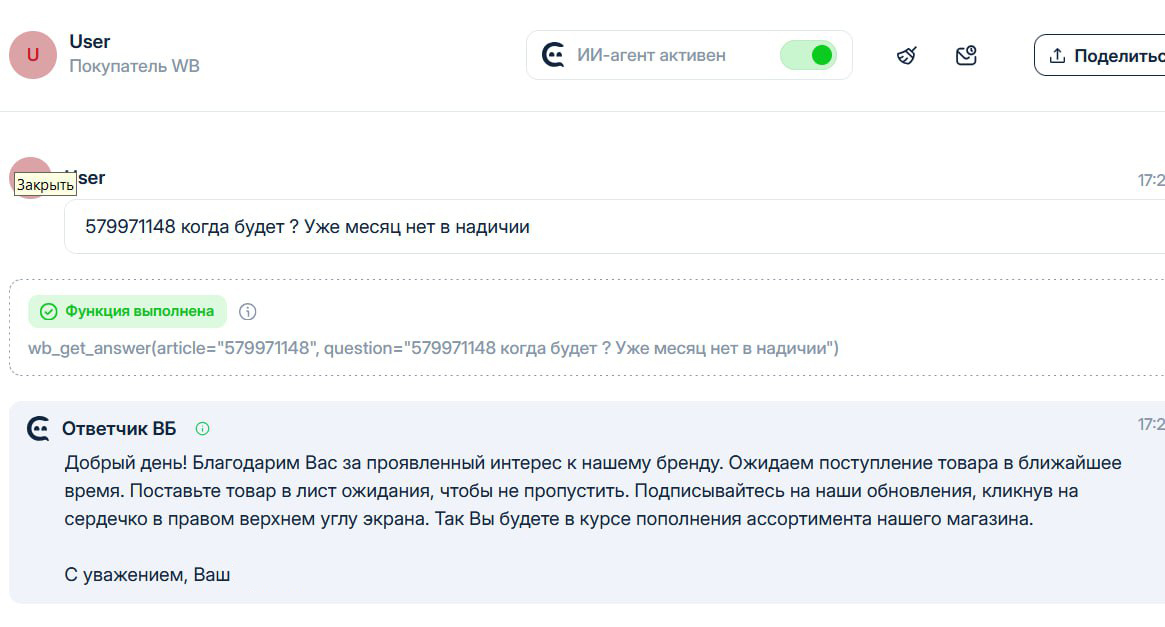 Теперь AI-сотрудник:- отвечает на сообщения покупателей менее чем за 30 секунд