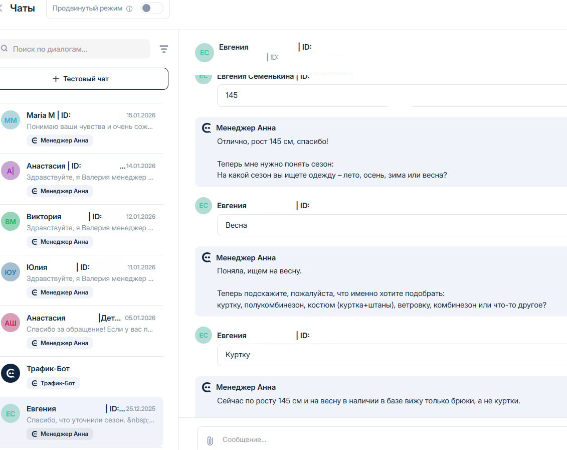 вопросы о размерах, составе тканей, сроках доставки, наличии.Из-за роста заказов менеджеры не всегда успевали оперативно отвечать на обращения.